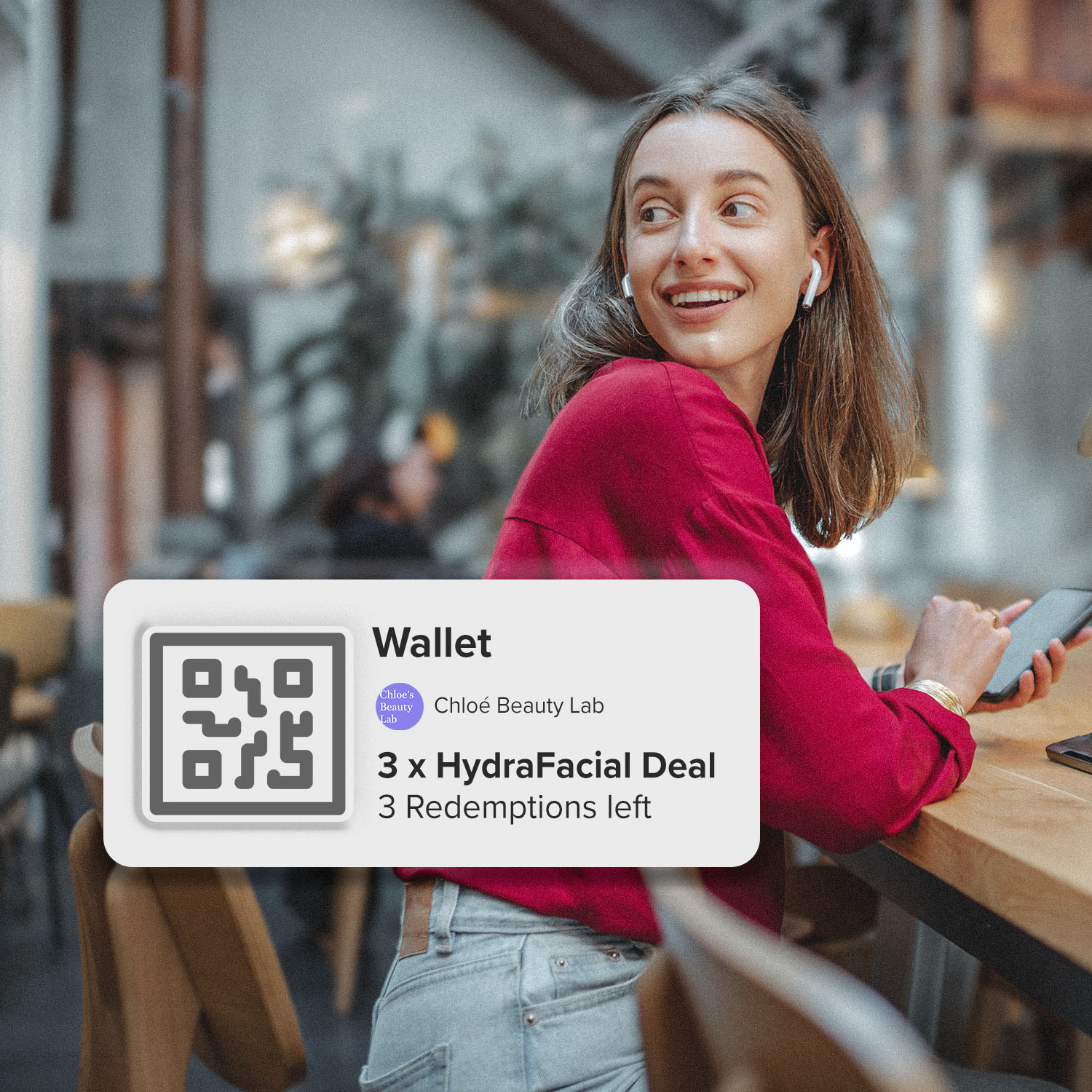You can claim a purchase by scanning the QR code in your wallet at the store.